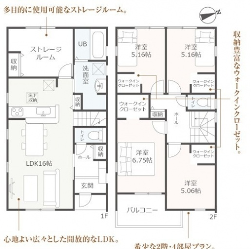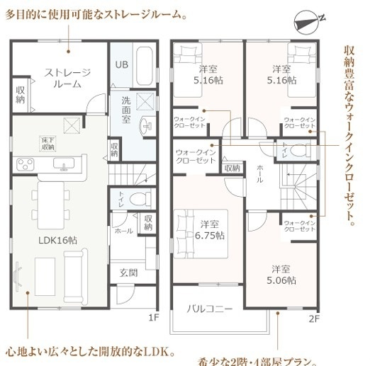 間取り | 4LDK+WIC+ストレージルーム | 駐車場 | 2 |