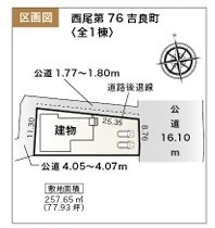 | 接道 | 東側16.1m公道 、北側1.77~1.8m公道 、西側4.05~4.07m公道 | ||