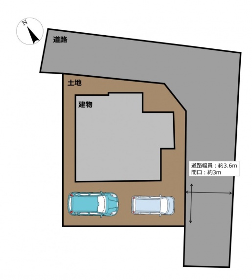 | 接道 | 北東側4m私道 、南東側3.6m私道 | ||